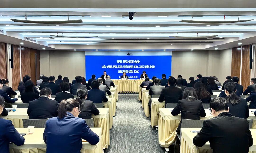 12月3日,天風(fēng)證券強化合規(guī)經(jīng)營與風(fēng)險管理會議召開,深入學(xué)習(xí)貫徹黨的二十屆四中全會精神和習(xí)近平總書記關(guān)于金融工作和防范化解重大風(fēng)險的重要論述,堅決落實行業(yè)監(jiān)管部門和湖北宏泰集團工作要求,主動回應(yīng)資本市場關(guān)切,進一步增強風(fēng)險意識、強化合規(guī)基因,全面筑牢“新天風(fēng)”高質(zhì)量發(fā)展安全屏障。